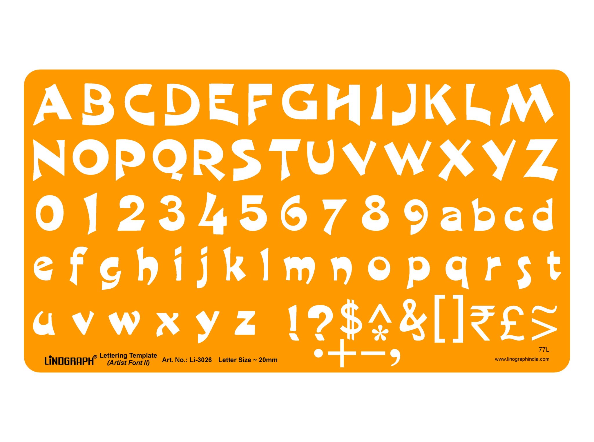 Li-3026 – Lettering Template (Artist Font II) Letter Size ~ 20mm